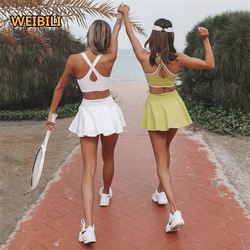 Allenamento atletico da donna 2-in-1 abiti da Tennis sport da Golf sportivo abbigliamento abbigliamento attivo abito senza maniche con costruito in pantaloncini
